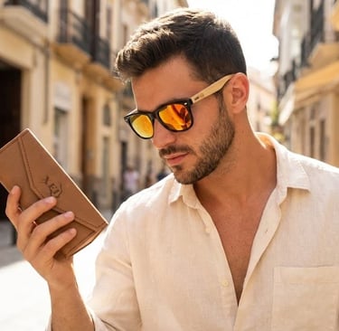 Visítanos en nuestra tienda para descubrir la colección de lentes de sol en dorado y negro. Estamos aquí para ayudarte.